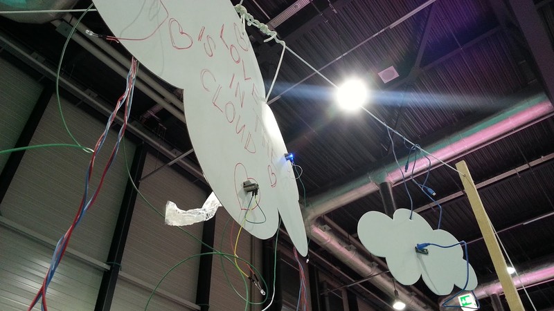 Labor was building a serial network with Arduinos at the “Jugend die beste Generation”-exhibition. Our visualisation of how data is transmitted and saved on servers somewhere in the world on one hand and what people think the cloud is about on the other hand caused some nice discussions. Our magic smoke definitely brought love in the cloud.
